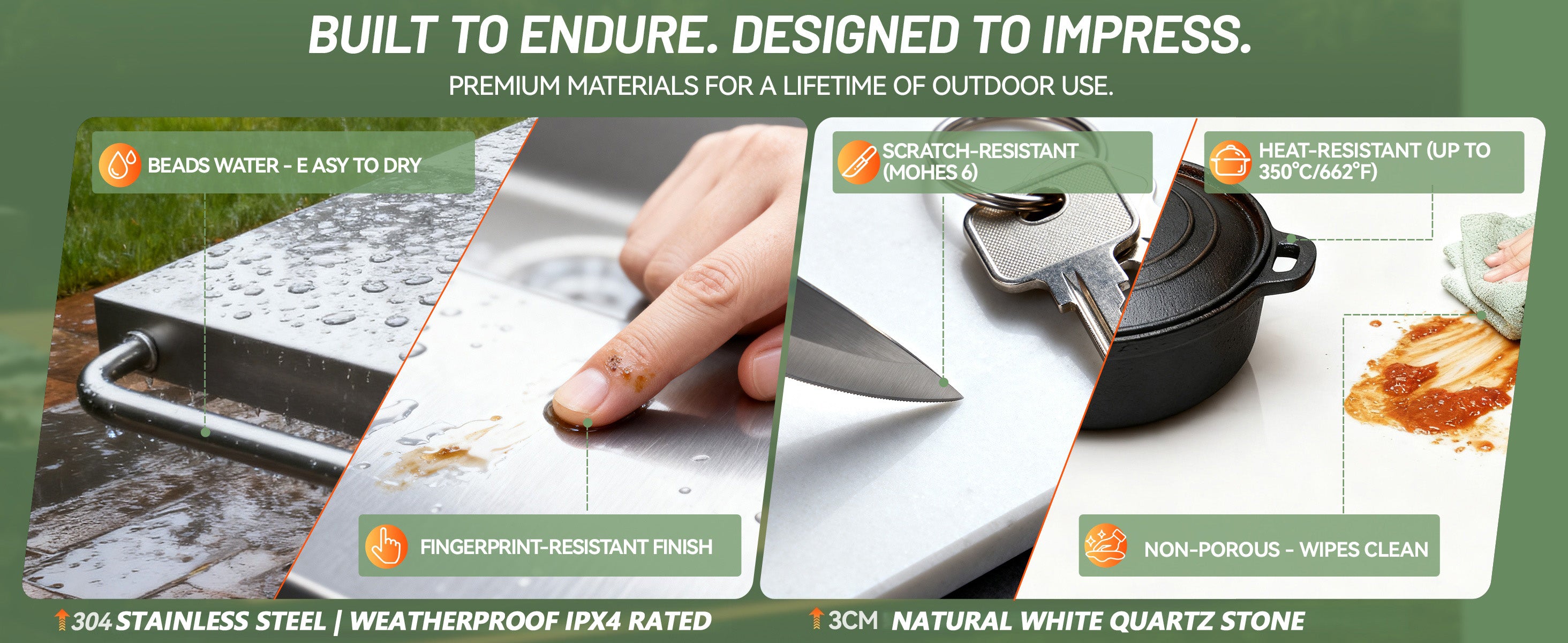 Our products are crafted from premium 304 stainless steel, offering exceptional durability, corrosion resistance, and a sleek modern finish—ideal for all-weather outdoor use.